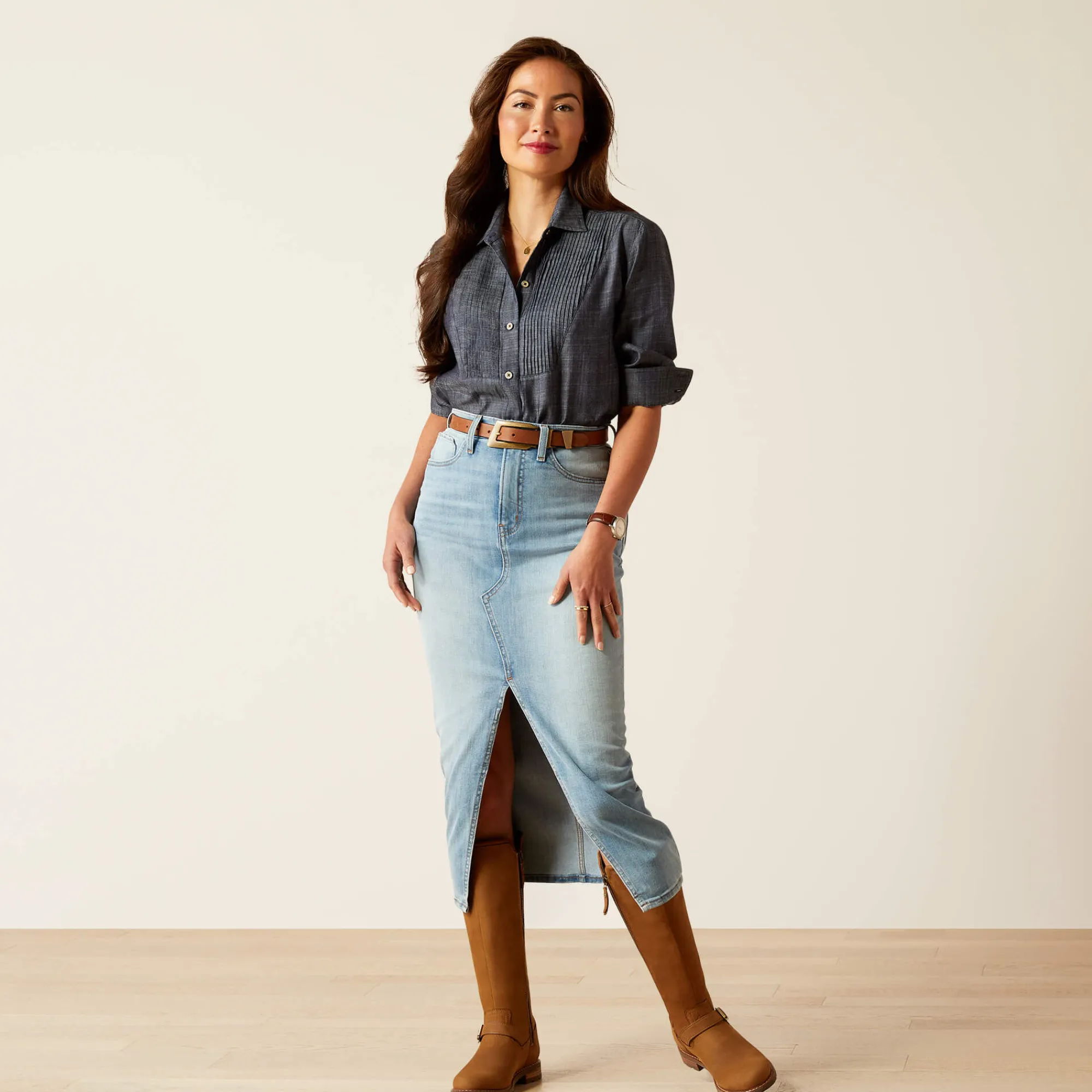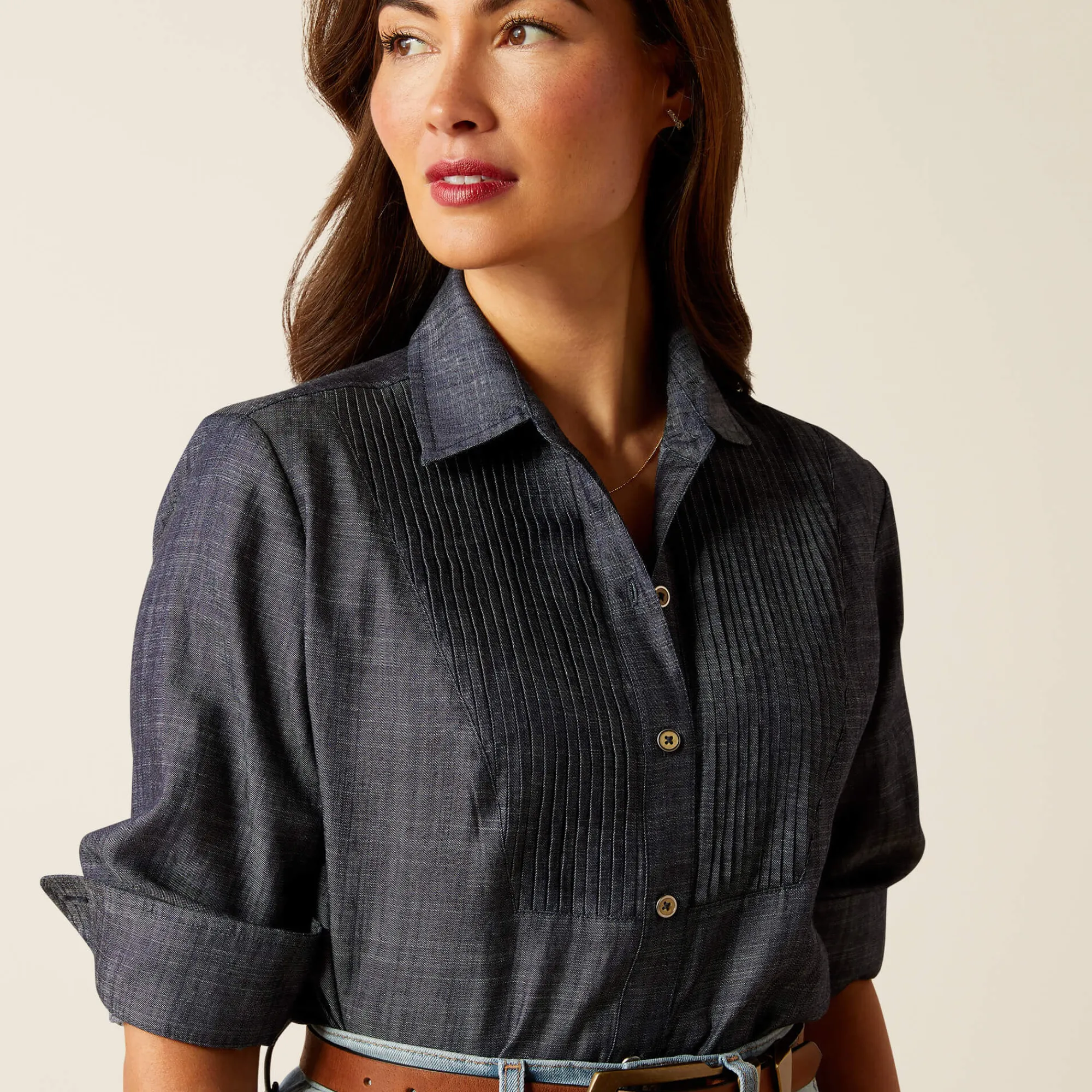 Mit seinem luxuriösen Fall und den plissierten Details auf der Vorderseite ist das Oban Shirt das Jeanshemd Ihrer Träume. Dieses Hemd ist so vielseitig, dass Sie es zu fast allem tragen können, ob elegant oder leger.