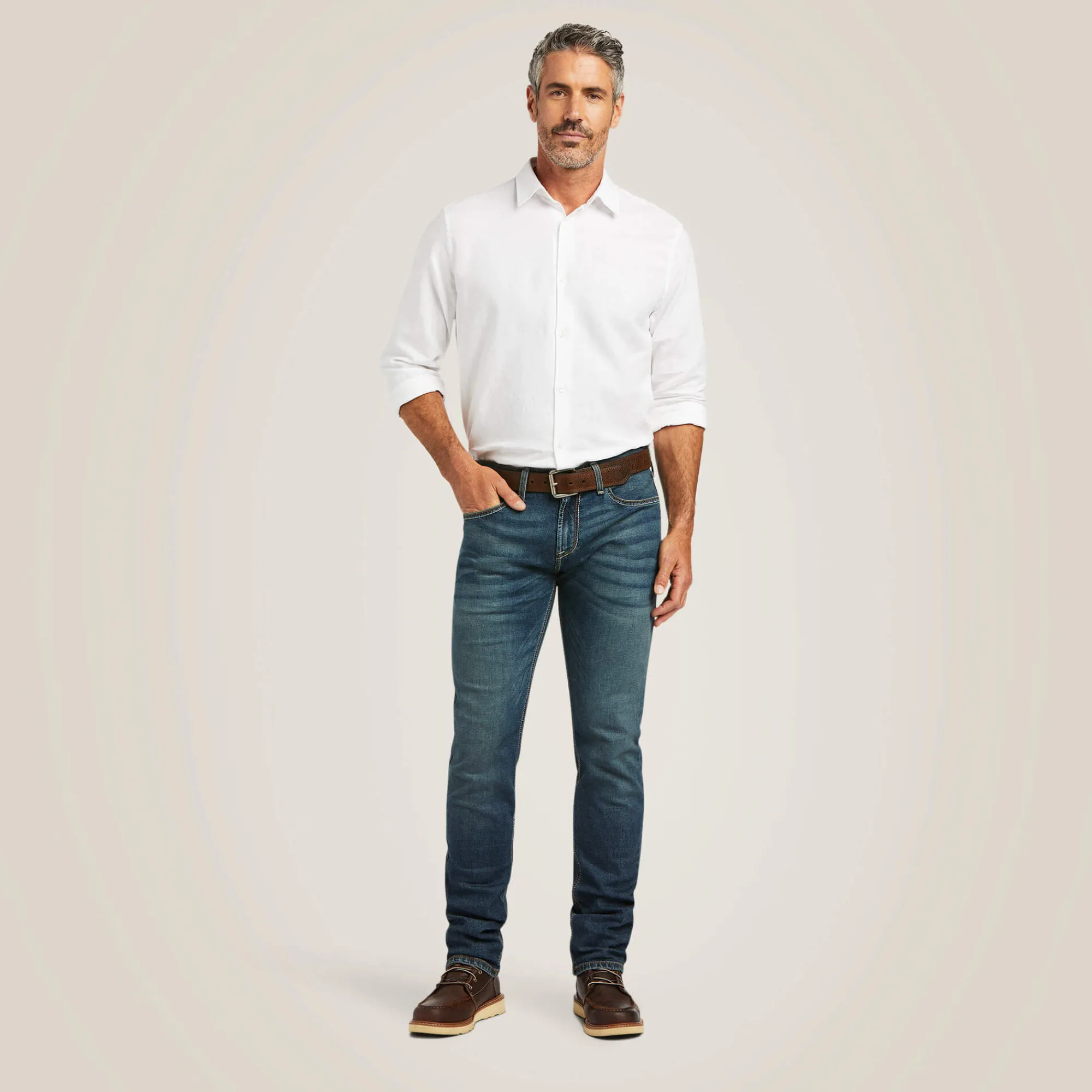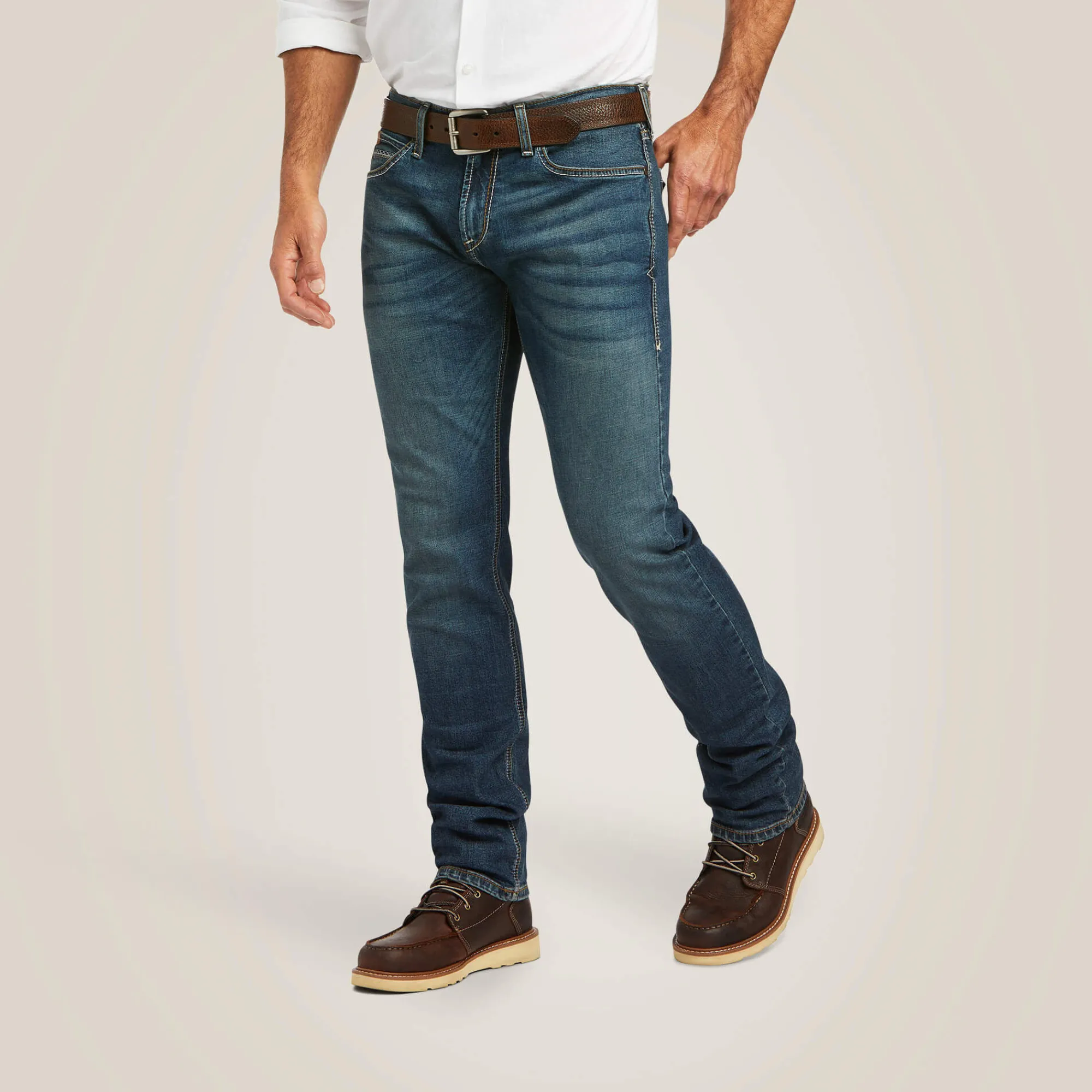 Die M8 ist unsere schmalste Jeans und schmiegt sich an Hüfte und Oberschenkel für einen modernen und gleichzeitig authentischen Western-Look an. Dank der schmalen Passform passt die Jeans perfekt zu Westernstiefeln oder Turnschuhen und is ein echter Allrounder.