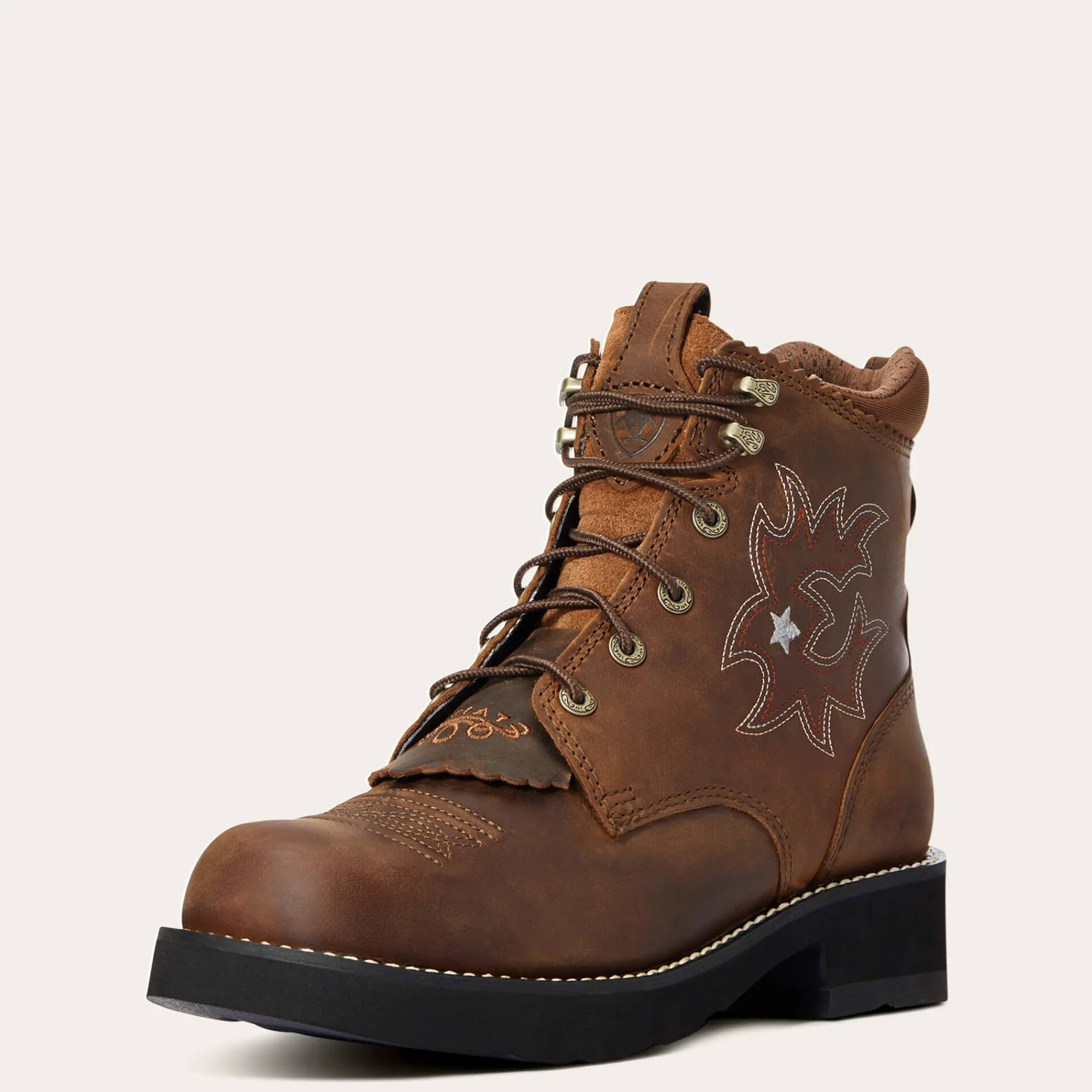 Der Probaby Lacer eignet sich gut sowohl für Aktivitäten im Stall, kann allerdings auch sehr gut zum Reiten eingesetzt werden. Hergestellt sind die stabilen Schuhe aus Vollnarbenleder; das dreireihige Stichmuster setzt dabei modische Akzente. Die Schuhe sind mit einer steigbügelfreundlichen Pro Crepe Außensohle mit Duratread Absatz und der bewährten ATS Sohlentechnologie versehen.