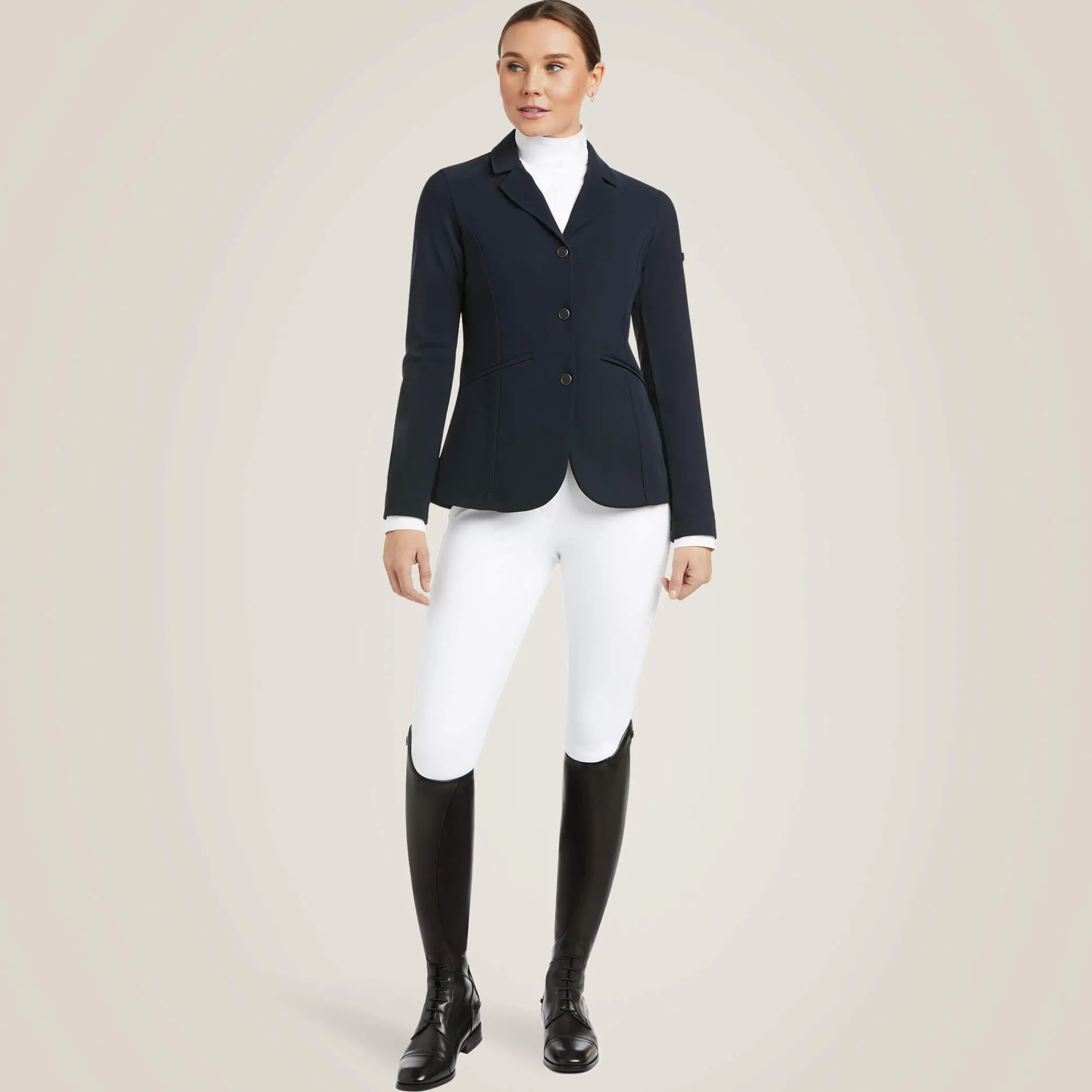Unsere neue italienische Kollektion wird in Italien von den besten Herstellern von Reitbekleidung gefertigt. Das Speranza Turnierjacket für Damen ist bereit für den großen Auftritt. Das moderne europäische Design besteht aus hochwertigem 360-Grad-Stretch und beeindruckt durch elegante, minimalistische Details. Bitte beachten Sie, dass dieses Produkt mit italienischen Größenangaben auf dem Hängeetikett geliefert wird.