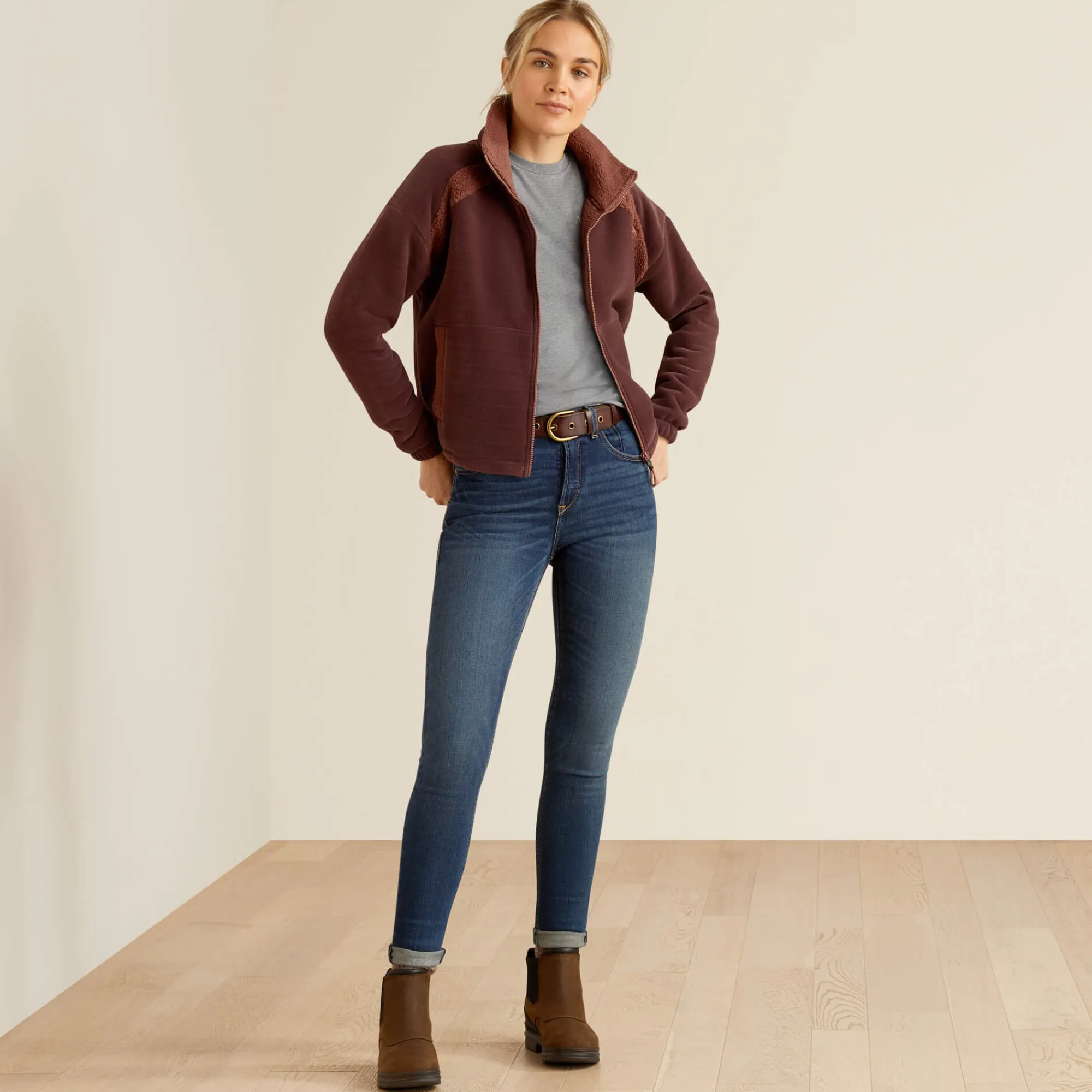 Das Lafayette Modell mit Reißverschluss ist aus flauschigem Sherpa-Fleece gefertigt, der sich angenehm anfühlt und ein Muss für die aktuelle Saison ist. Mit seiner Länge bis zum oberen Hüftbereich und dem verstellbaren Saum lässt sich dieses Kleidungsstück genauso gut zu Hause wie bei einem Kaffee mit Freunden tragen.