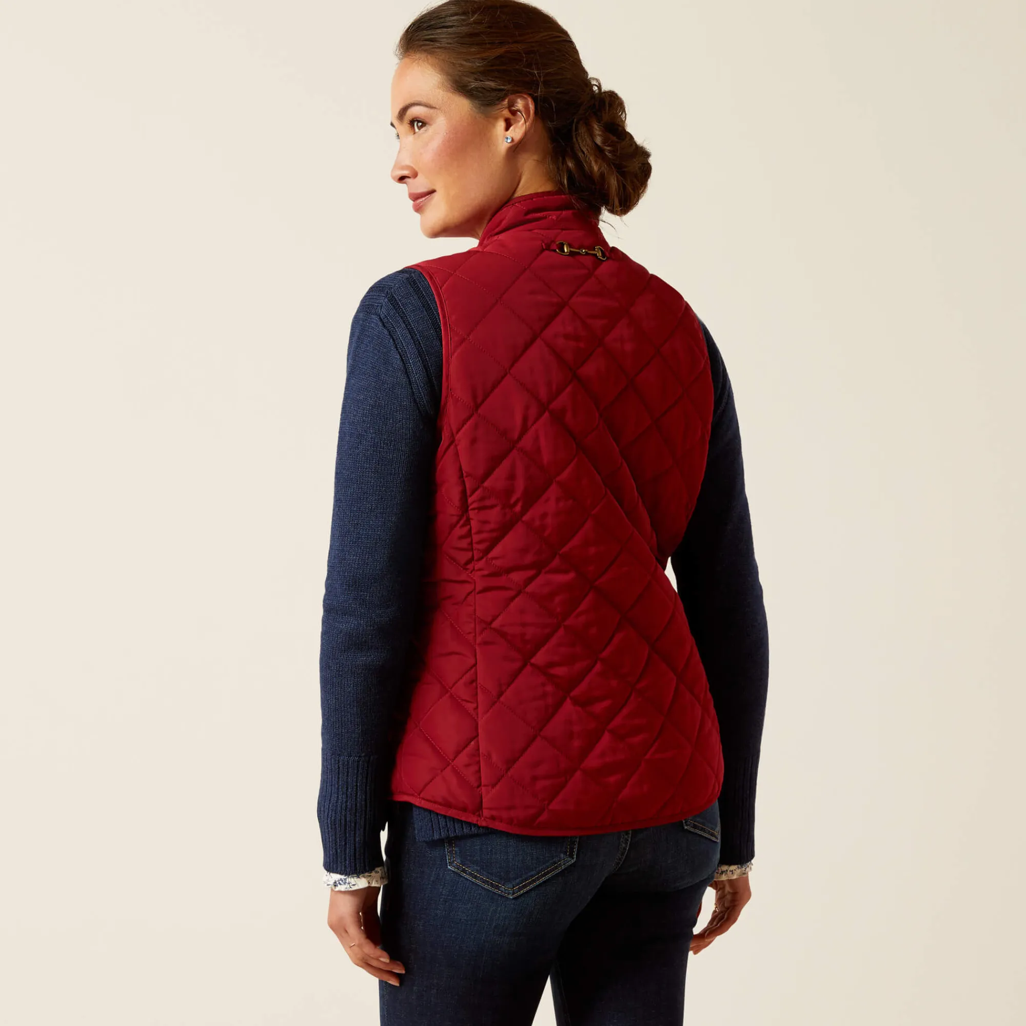 Inspiriert von einem Klassiker von Ariat bietet die ärmellose Woodside Weste klassische Raffinesse und zuverlässige Wärme. Die Rautensteppung, das Innenfutter mit verspieltem Print und ein Gebiss-Detail sorgen für eine Prise Reitercharme. Das Design besteht aus 100 % recyceltem Polyester mit EcoDry™-Appretur und Primaloft®-Isolierung aus recyceltem Material, die vor Wind und Wetter schützen.