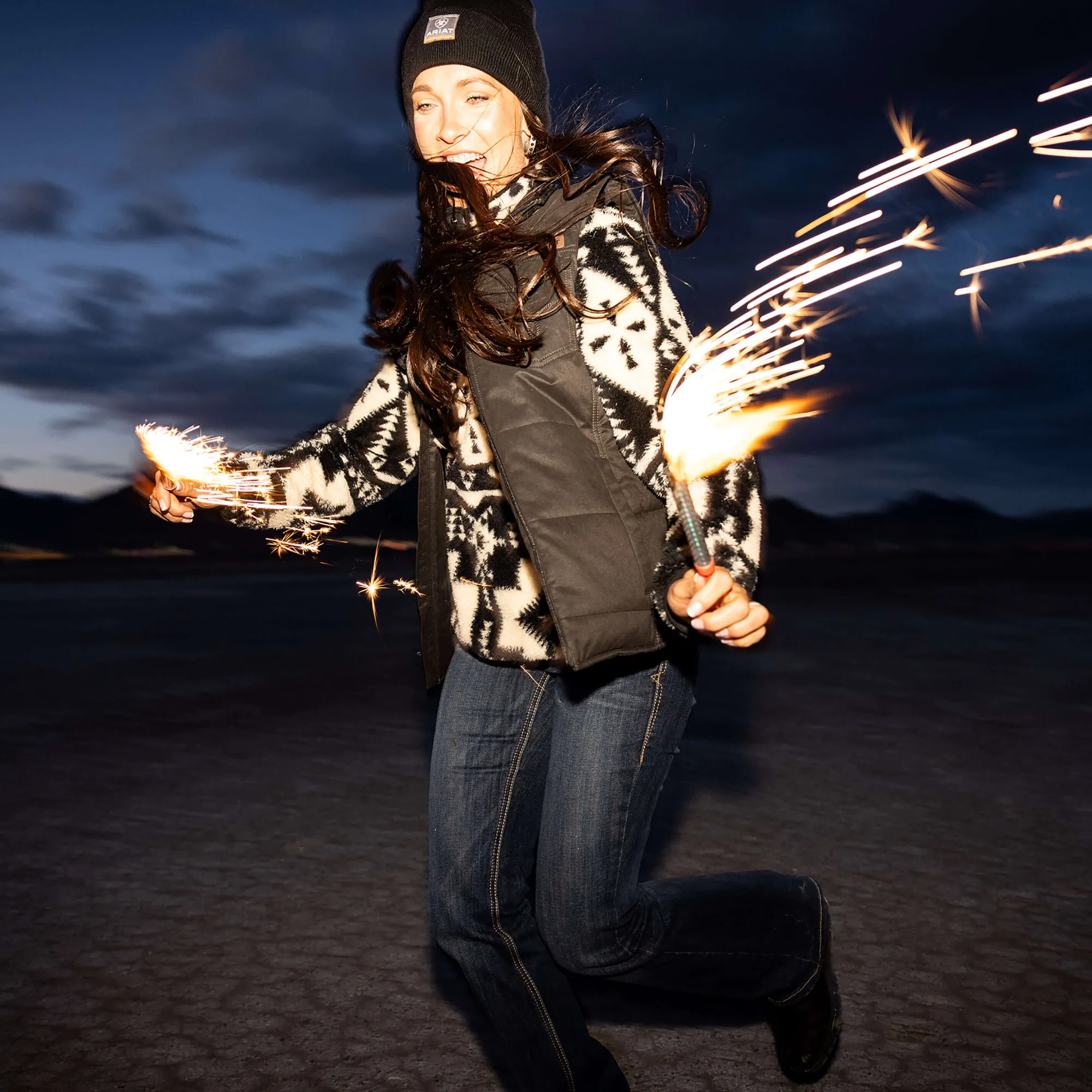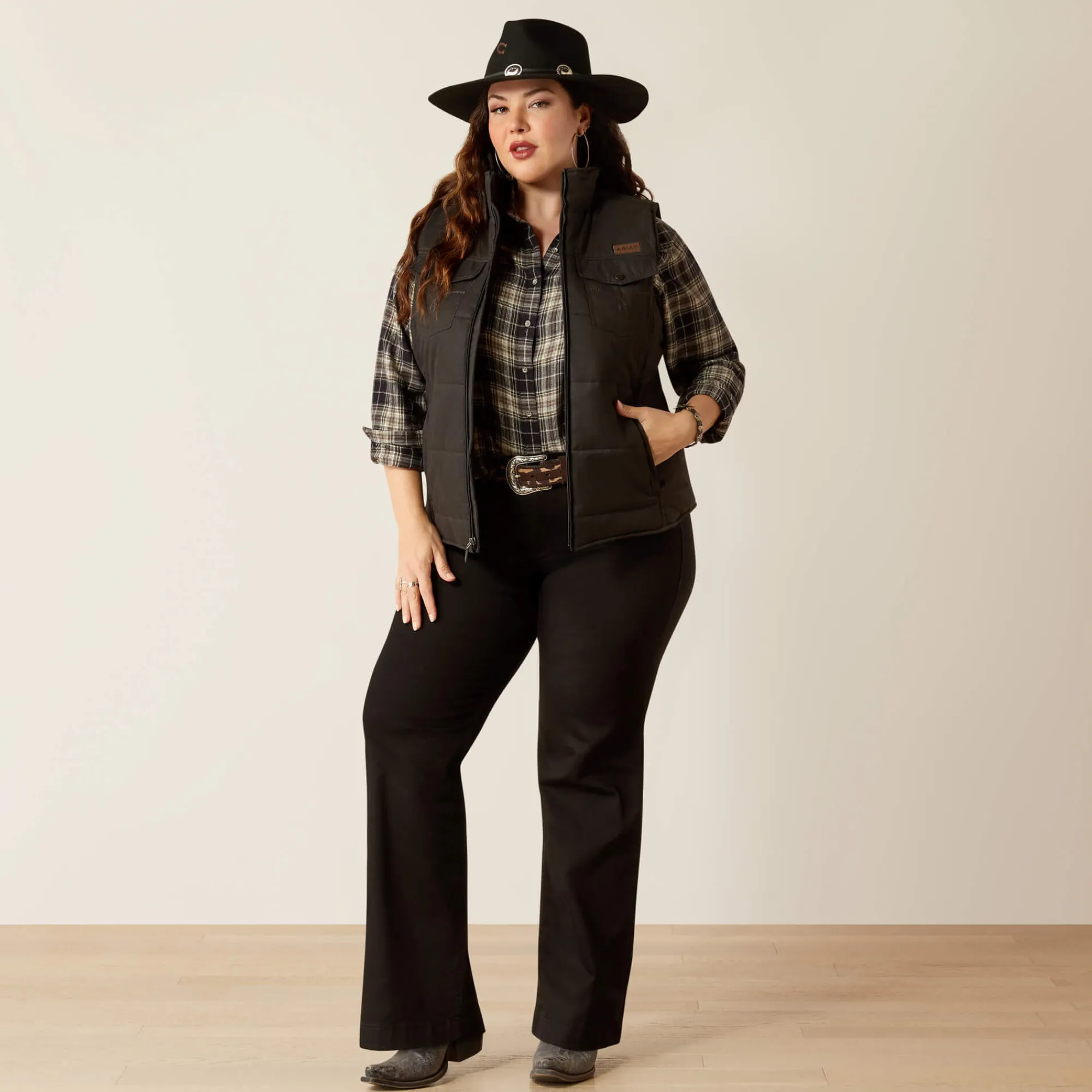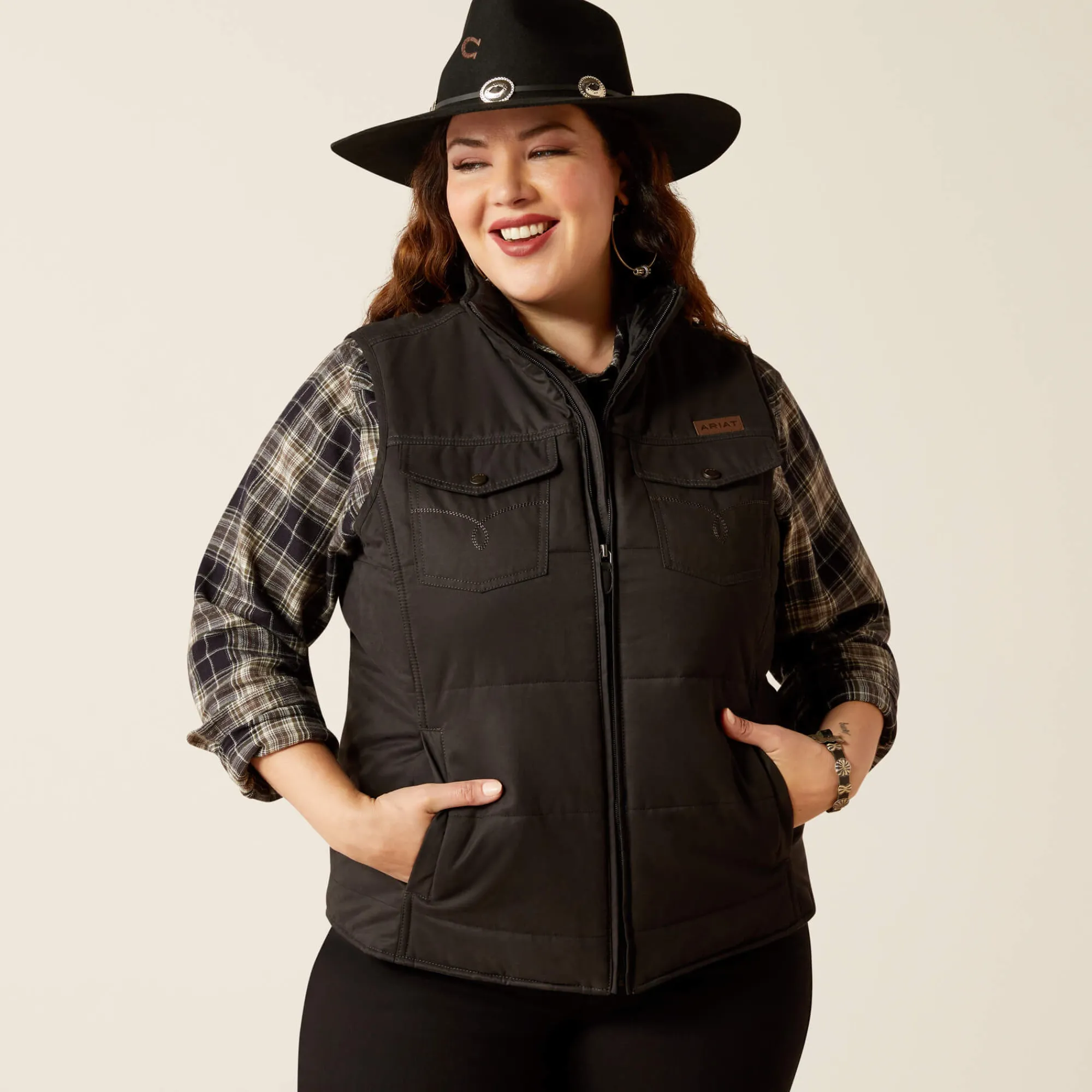 Unsere ärmellose Grizzly Weste ist perfekt für die Ranch und für jedes Wetter. Die leichte Isolierung hält den Körper warm und das robuste, leistungsfähige Stretchmaterial sorgt für Bewegungsfreiheit und Komfort. Die Nähte entlang der Vordertaschen verleihen dem Design Western-Flair.